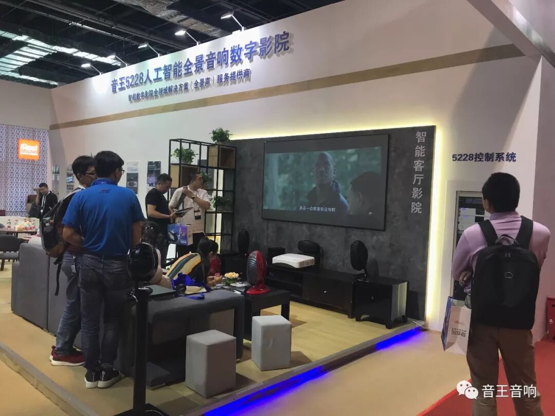 音王5228人工智能全景数字影院吸引了众多客户现场进行体验。该产品采用音王独家专利技术,搭建22.5.8通道的全景声系统,以实现多层多声道声音的重放,影院处理效果独特,声音清晰度、饱满度和声像定位的准确性都达到专业级全景影院水平。此外还能实现卡拉OK、游戏、体育赛事直播、音乐虚拟环绕声欣赏、演唱会直播、VR游戏及体验、灯光等八大功能的一键切换, 颠覆现有传统设备,在行业处于领先地位。
